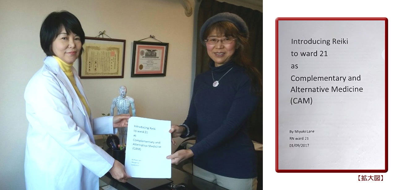 ニュージーランドにあるMidCentral District Health Board Palmerston North Hospital (ミッドセントラル医療区パーマストンノース病院)の看護師であるレイン・ミユキさんがレイキ療法のPilot Study(予備研究)をスタートさせることになりました。